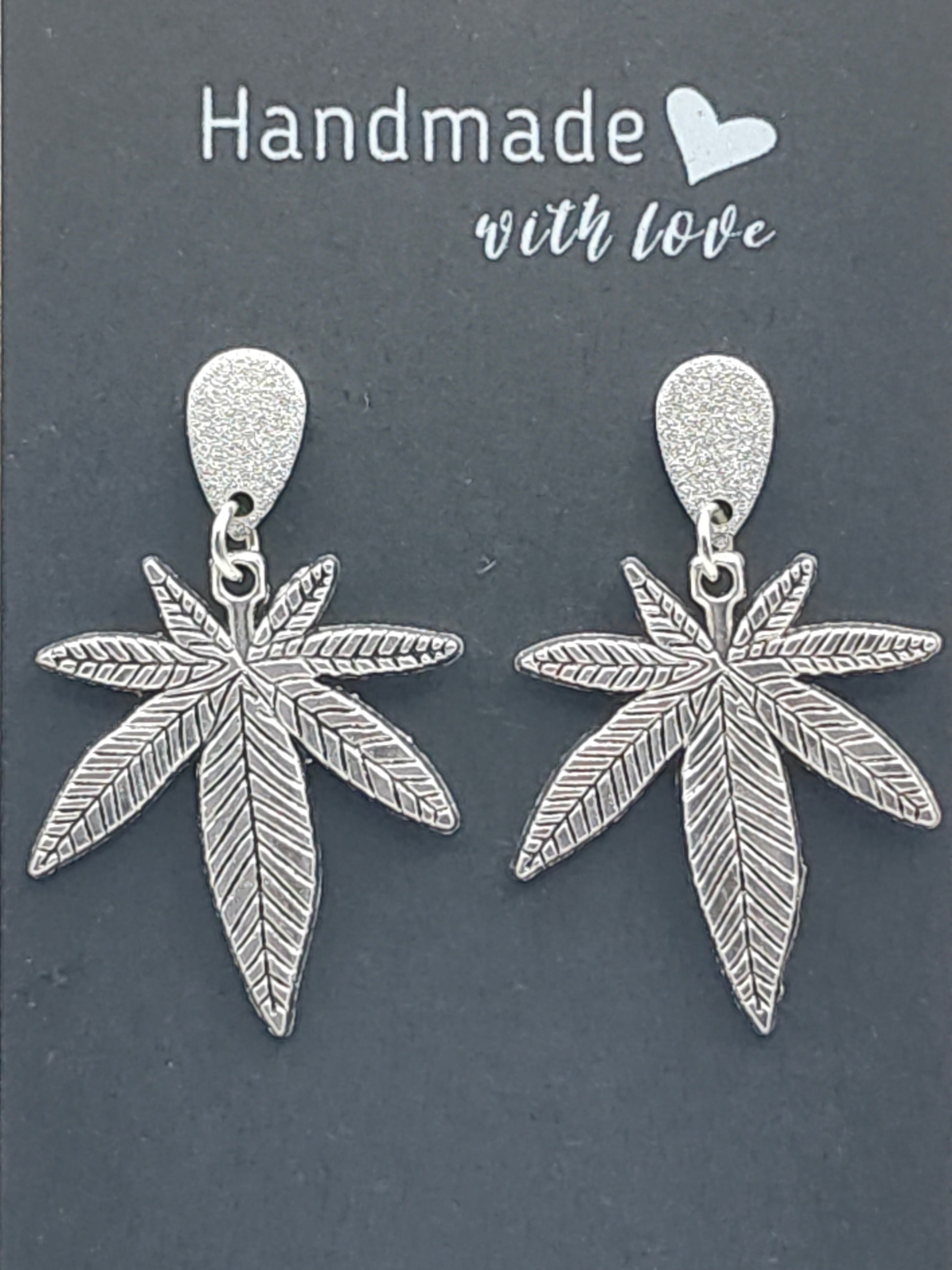 Make a bold statement with these eye-catching cannabis leaf earrings featuring a stunning sparkle stud teardrop design. Each earring showcases a delicate cannabis leaf silhouette suspended from a glittering teardrop-shaped stud, creating an elegant blend of nature-inspired artistry and modern glamour.